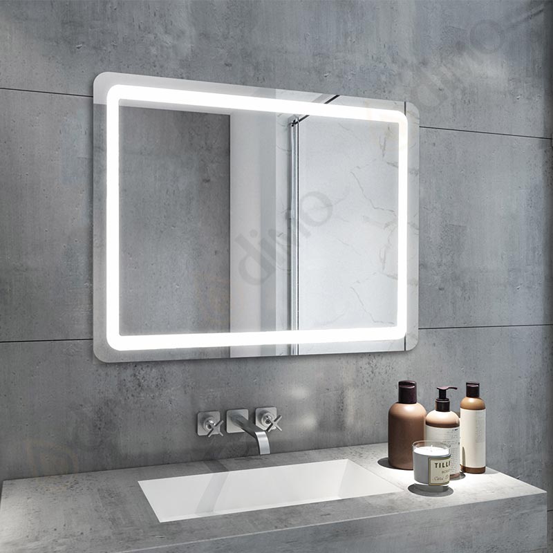 This Round Corner LED Mirror is a framelss mirror, most hot selling model, with LED backlighted to wash the wall, and the wall refecting light as the light, and add to the atmosphere of the bathroom. The most made shapes are rectangle, round, and also can be irregular shapes.